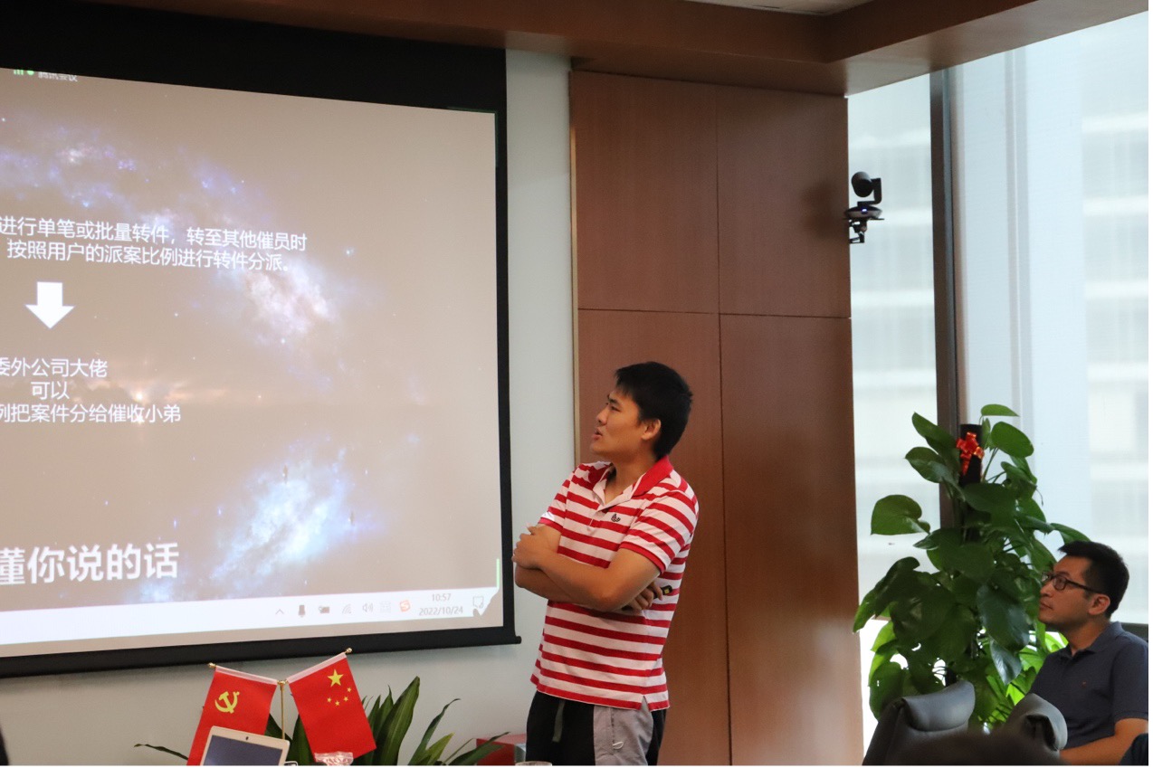 经由金融科技部负责人容赜抛金后,部门里的“临时F4组合”也向大家带来了他们的分享内容。首先是梁彦豪秉承“未来会更美好”的主题,结合项目向大家介绍了作为一名产品经理的岗位职能和超高“手艺”,解释了新时代下的产品经理已经不仅需要“听得懂你说的话,想得到你想去哪,复杂问题简单化”,还要知己知彼,方能百战。就好比哆啦A梦的百宝箱,没有你不需要,只有你还想不到。