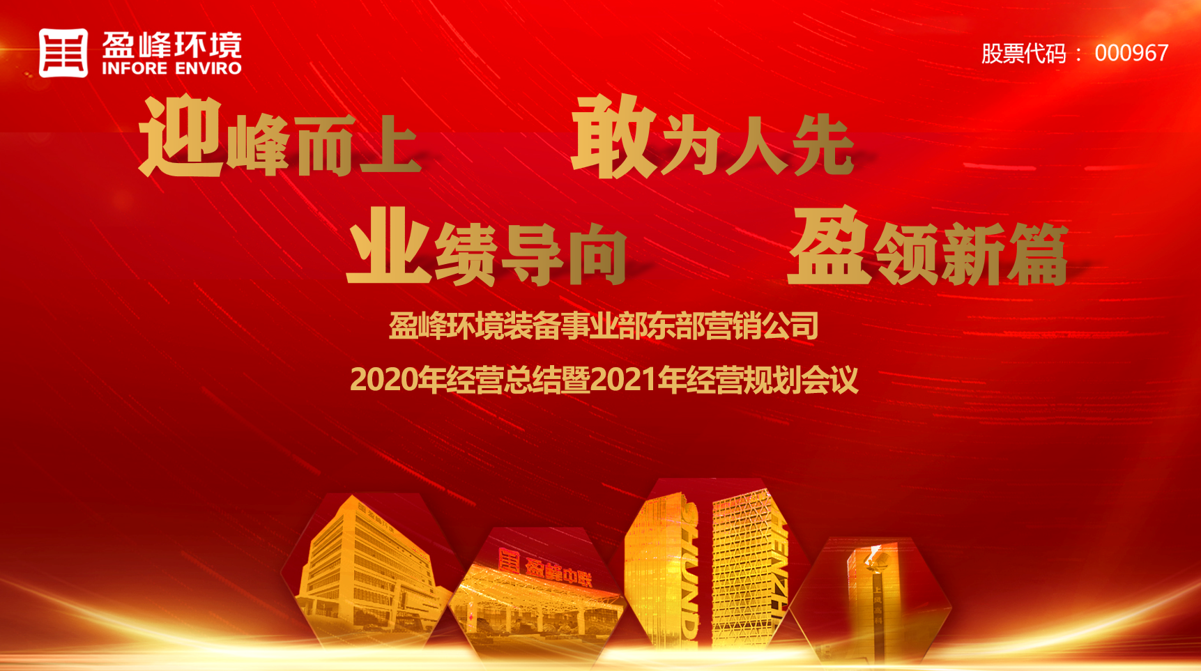 会议的重要环节,东部营销公司总经理刘丰做总结及动员,对2020年经营工作的亮点工作进行了年度总结,也对经营中出现的问题进行了深刻的探讨与反思,同时明确了2021年的业绩目标与工作方向,将进一步推进重点工作的深入与细化。刘总对东部全体成员在2020年的付出表示感谢,并表示每一个伟大的企业的背后,必定有一个伟大的梦想。我们要心怀梦想,立志将盈峰环境打造成智能环境装备及服务的世界级一流企业。
