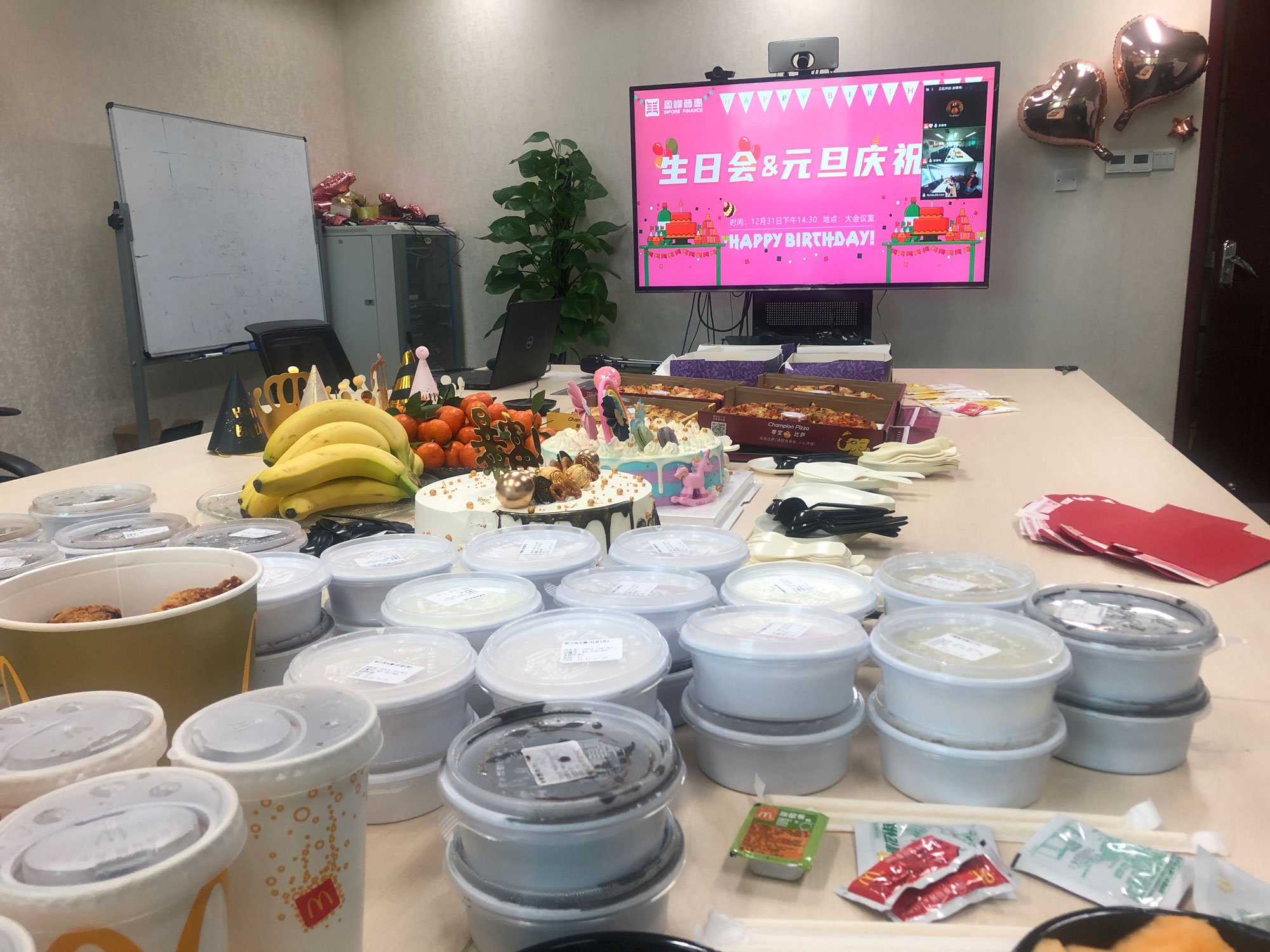 员工生日会暨元旦庆祝会正式开始,各种零食整装待发