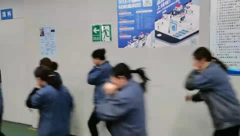 下午三点半警报声准时响起,所有的员工迅速警觉并行动起来,按照逃生演练方案设定的逃生路线,迅速有序的向指定好的空地跑过去。